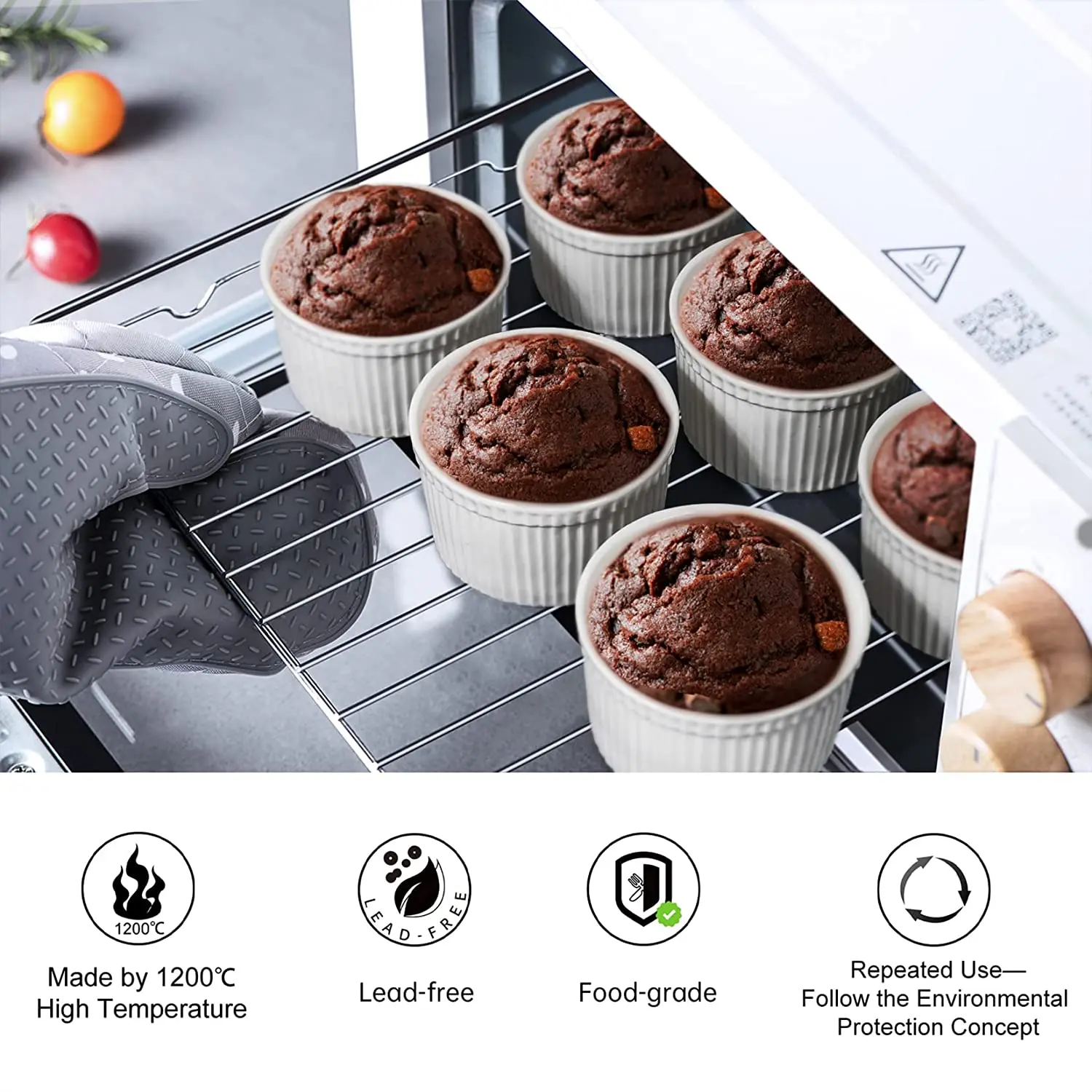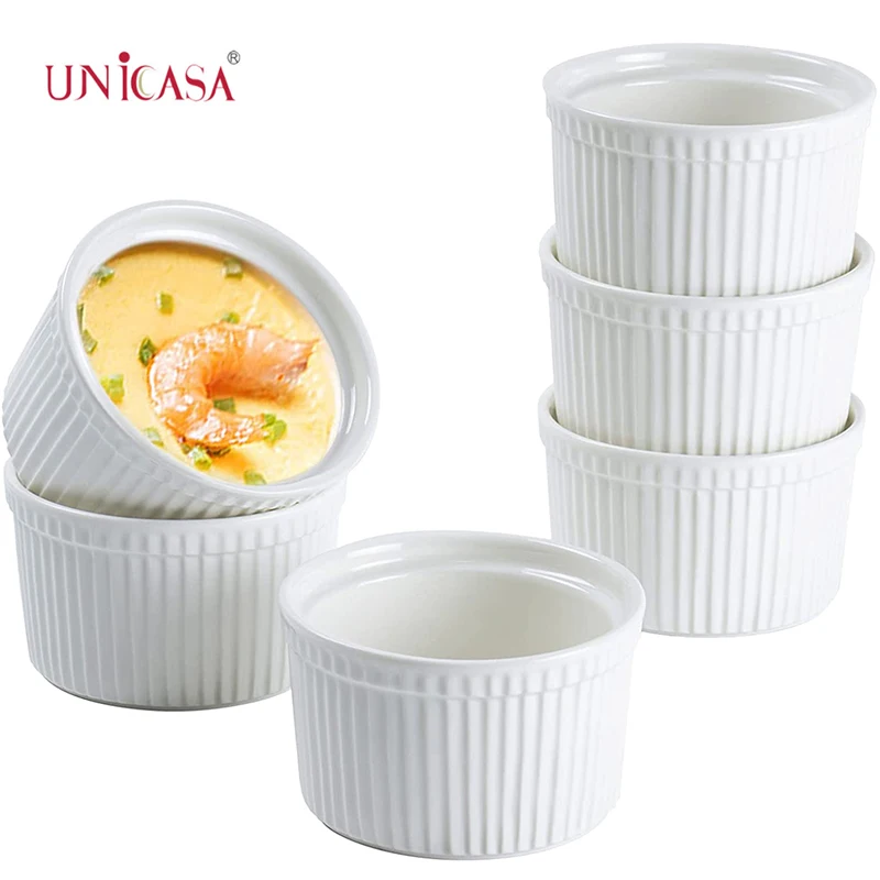 UNICASA 8 OZ Ramekins for Creme Brulee Porcelain Ramekins Oven Safe Classic Style for Baking Souffle