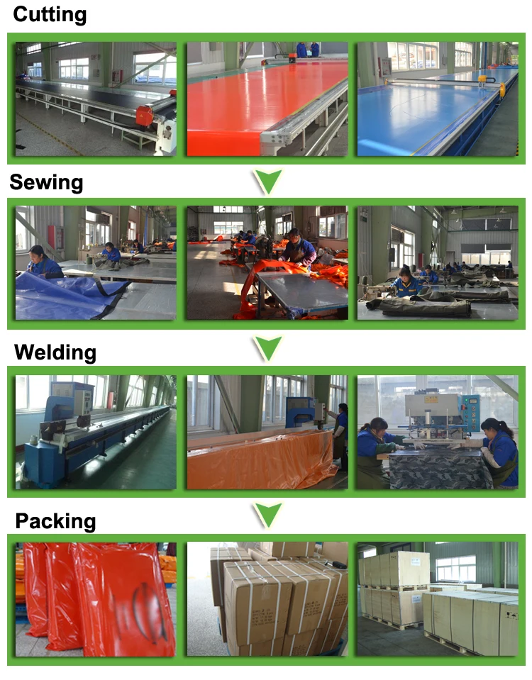 | Material | 0.9mm thick polyester fiber double deck pvc Features: 1) High tenacity polyester yarns with PVC coating; 2) Laminated technology & Hot-melt Coating technology; |