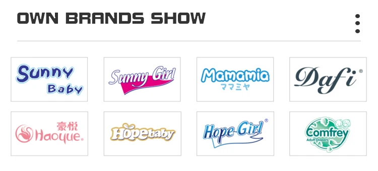 Q1: Where is your factory? RE: There are five plants : Two located in Hangzhou Zhejiang province China.Third one Suqian Jiangsu. Forth settle in Rayong Tailand. Q2: What's the products you can offer of your Dafi Brand? RE: Baby adult Diapers,Sanitary Napkin,Baby adult tissue paper,wet wipes. Q3: Why shall I sell your Dafi and what support we can get? RE: Selling Dafi's brand means you no need to pay mould fee and others costs of printing.And you can order all Daf's Item to 1 *20GP container at least,no MOQ required and we will arrange the lesson of after-sale service traning for you are no longer to worry of new product development,Dafi's will do.Price guarantee: you will have best discount from Dafi against the quantities you order. Q4: Do you have other own brand for other hygiene item? RE: Yes ,we have other brand,you also can combine it to one full container if we have stocks.