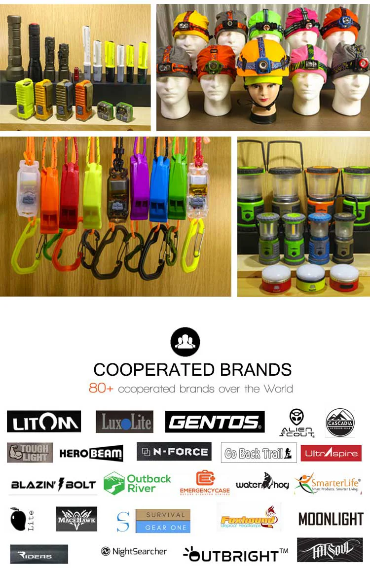 4 | Work Time (3 * 18650 batteries) | White light: 500 lumen: 20h; 200 lumen: 38h; 20 lumen: 360h | ||||||