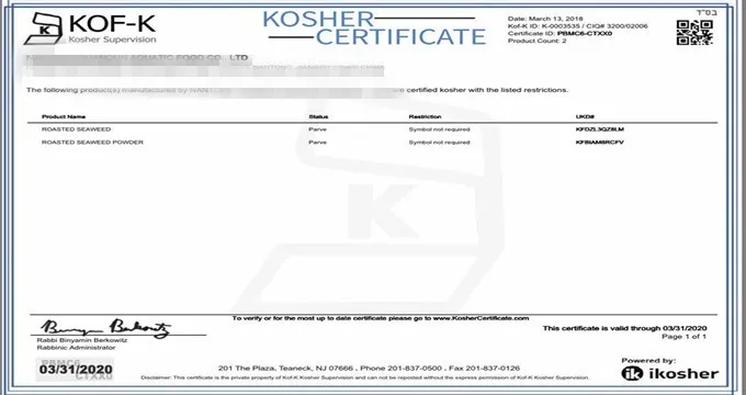 3. Certification: ISO,QS,HACCP,BRC.HALAL,KOSHER.