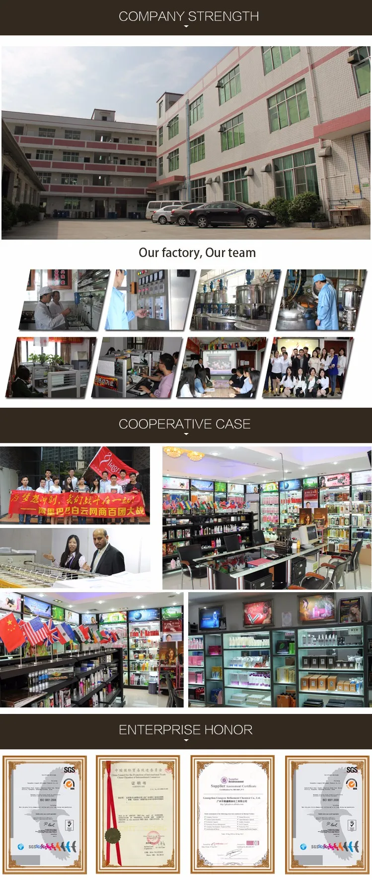OEM is our advantage, because we have 15 years of experience in the production of the factory, hundreds of different beauty salons products absolutely have quality advantage and price advantage. We supply products and raw materials for many of the world's leading brands, familiar with the needs of different overseas markets. High quality, competitive price is our commitment.With CFS, MSDS, and ISO guideline and years of Experence also is the strong confidence in providing high quality products with competitive prices.