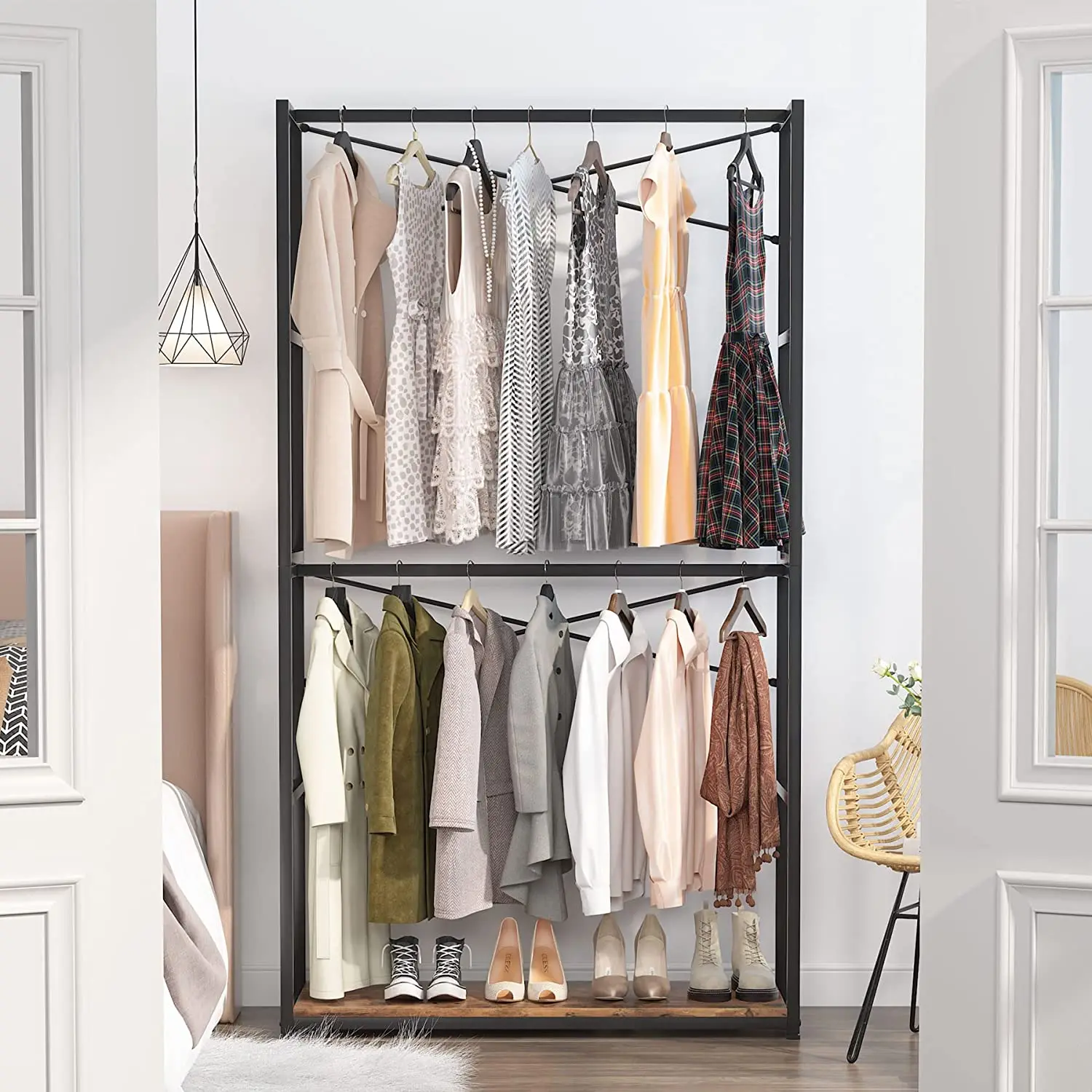 Item Name | Free-standing Closet Organizer Double Hanging Rod Clothes Garment Rack Large Wardrobe Clothing Storage Closet System |