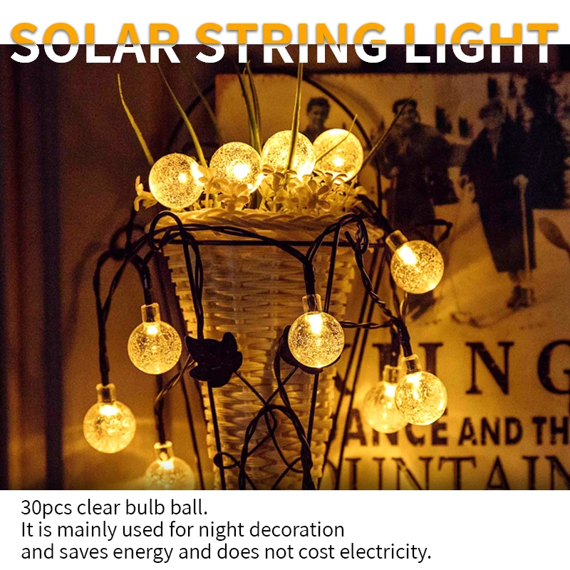 Product Name | Solar String Light 30 LED 20ft Waterproof Crystal Ball String Lights | |||||||