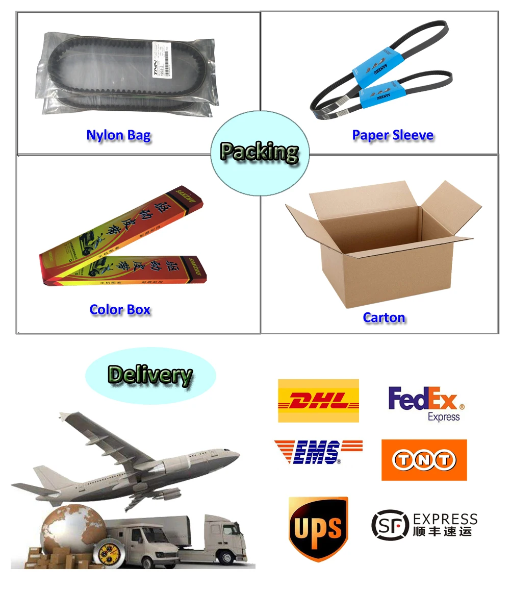 Poly v belt enable the non-positive transmission of torque, with good oil, heat and wearing resistance, low elongation and high flexibility, excellent power transmission;