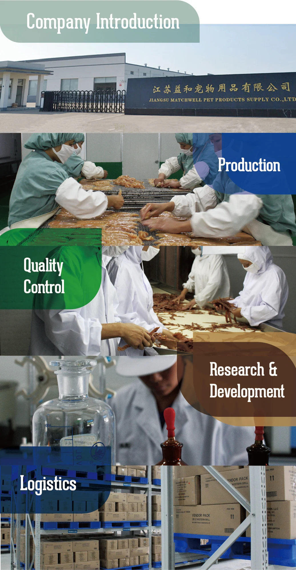 Our headquarter is located in Suqian, Jiangsu Province, about 4.5 hours from Shanghai by high-speed railway, or 3 driving hours from Nanjing. We have 4 manufacturing facilities for Matchwell products all located in Suqian, 2 are running, 1 in construction, and 1 for tofu cat litter production.
