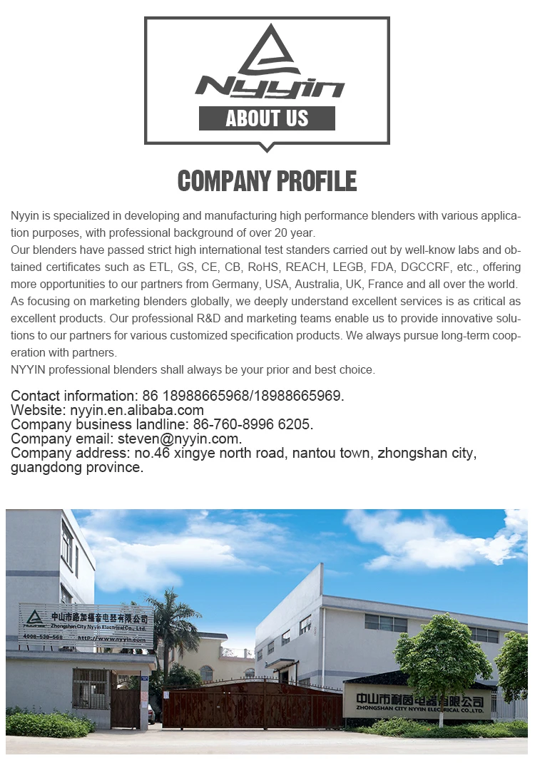 We have been manufacturer of commercial blender more than 18 years, specialized in developing and manufacturing motor food machine.