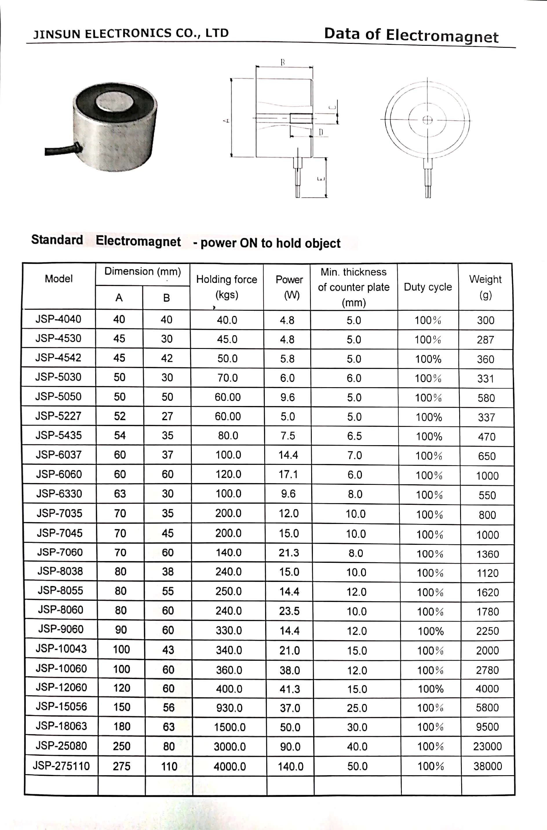 Jinsun Electronics Co., Limited is a hi-tech export oriented factory located in Ningbo, Zhejiang province. It has been involved in engineering and manufacturing permanent magnet, magnetic devices and electromagnet since 2007. Rare earth permanent magnet include: neodymium magnets, samarium cobalt magnets and magnetic assemblies. Our Electromagnet includes holding electromagnet, linear push pull solenoid and tubular solenoid.