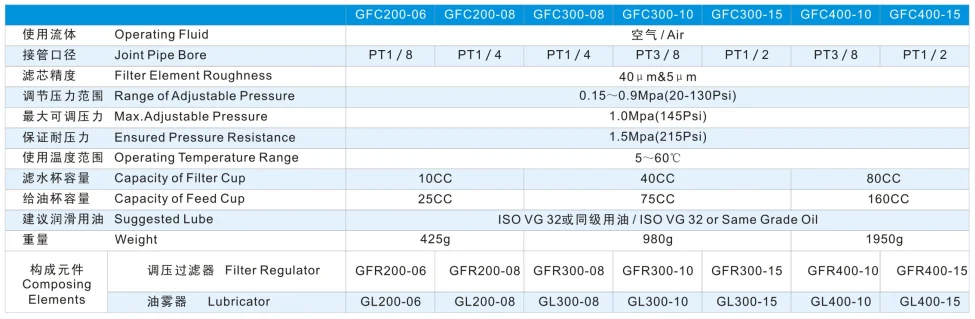 Pneumatic lubricator parker filter electronic pneumatic regulator filter regulator lubricator