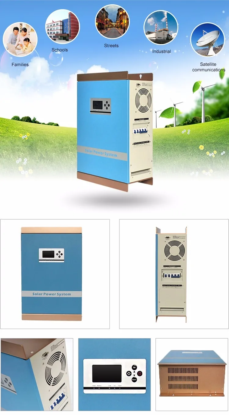 The product is an integrated intelligent inverter with built-in charge controller system designed for large photovoltaic power.Based on double MCU intelligent control technology,it provide customers with the best experience.