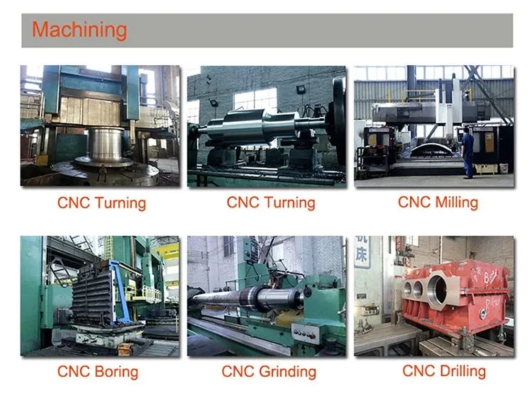 Main Machining Equipment | Fixed-Beam Gantry Type Boring and Milling Machining Centers (working size: 2.8m*6m), 6.3m Vertical Lathes, 1.8m*8m Horizontal Lathes and Deep Drilling and Boring Mills (especially suitable for internal hole and side hole rough machining). | ||||
