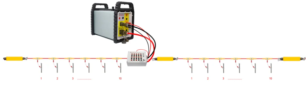 GD-10 Advanced 2D Multi-electrode Res Imaging System is the 2D ERI system with functions of SP survey, 1D Resistivity/IP sounding survey and 2D Resistivity Imaging survey. The mainframe including GD-10 mainframe and CS-60 multi-electrode switching box, which support max 60 pcs electrodes.