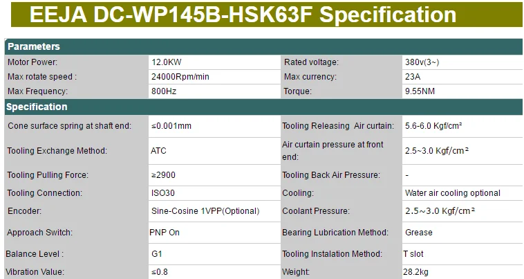 Professional Custom 12kw Machine Spindle 24000rpm Water Cooled Spindle