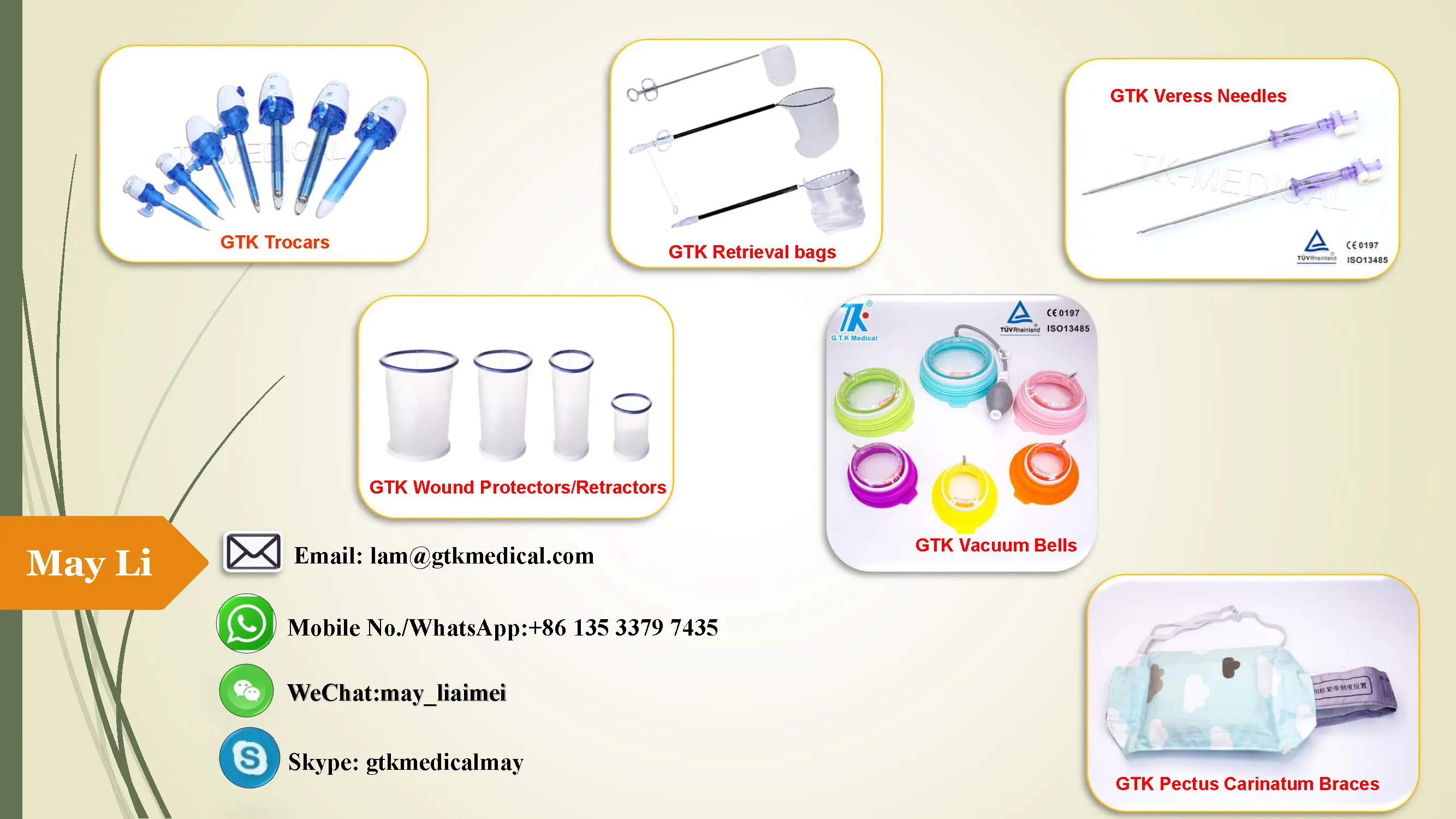 GTK Medical, established on March 3, 2004, is a hi-tech medical device manufacturer which focuses on the R&D and manufacturing surgical devices like trocars, retrieval bags, veress needles, and medical devices, such as Vacuum Bells, Pectus Carinatum Braces,for more than 17 years.