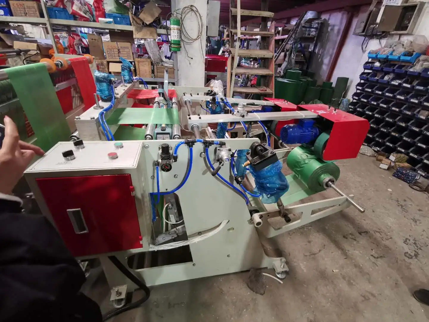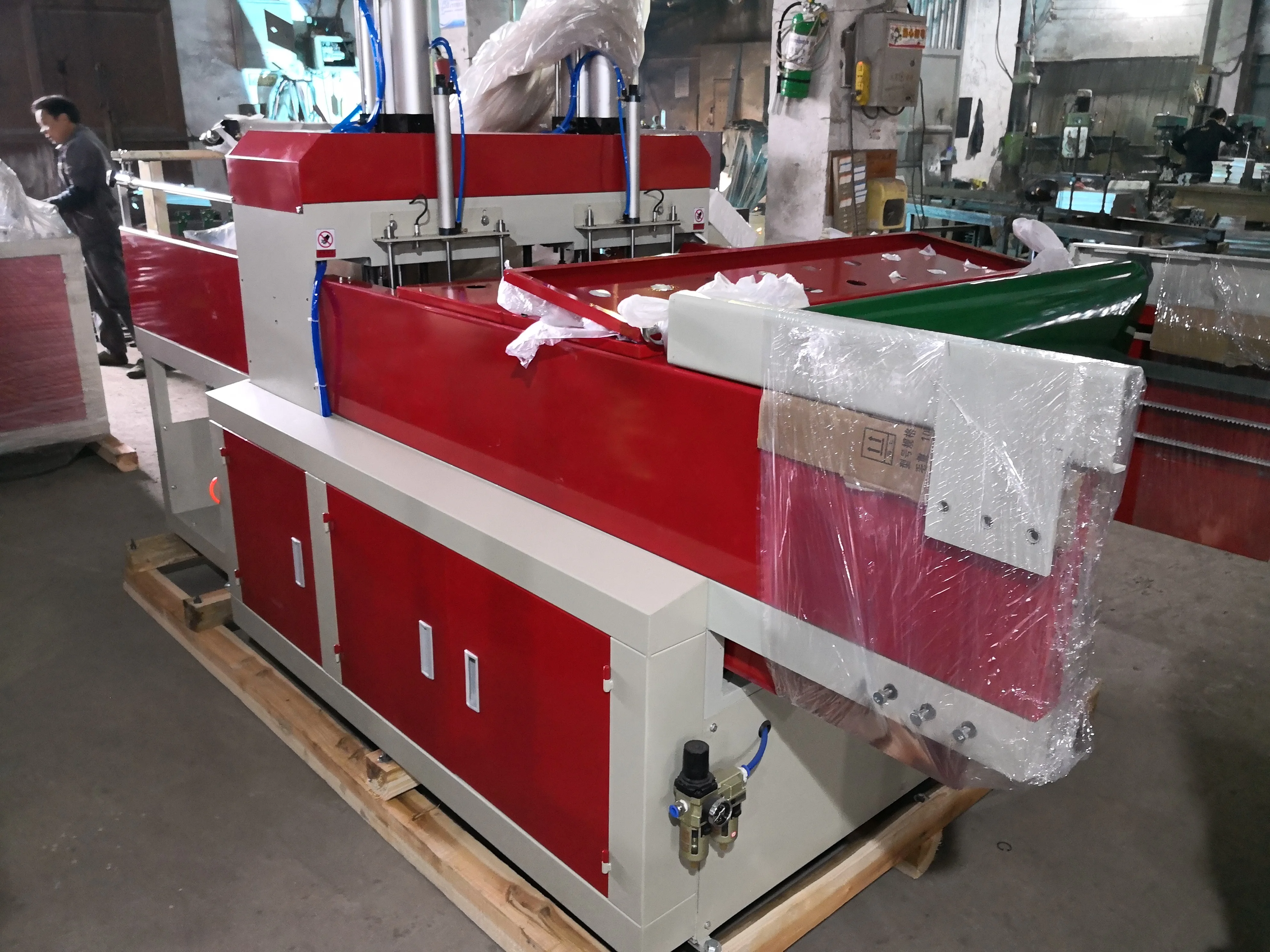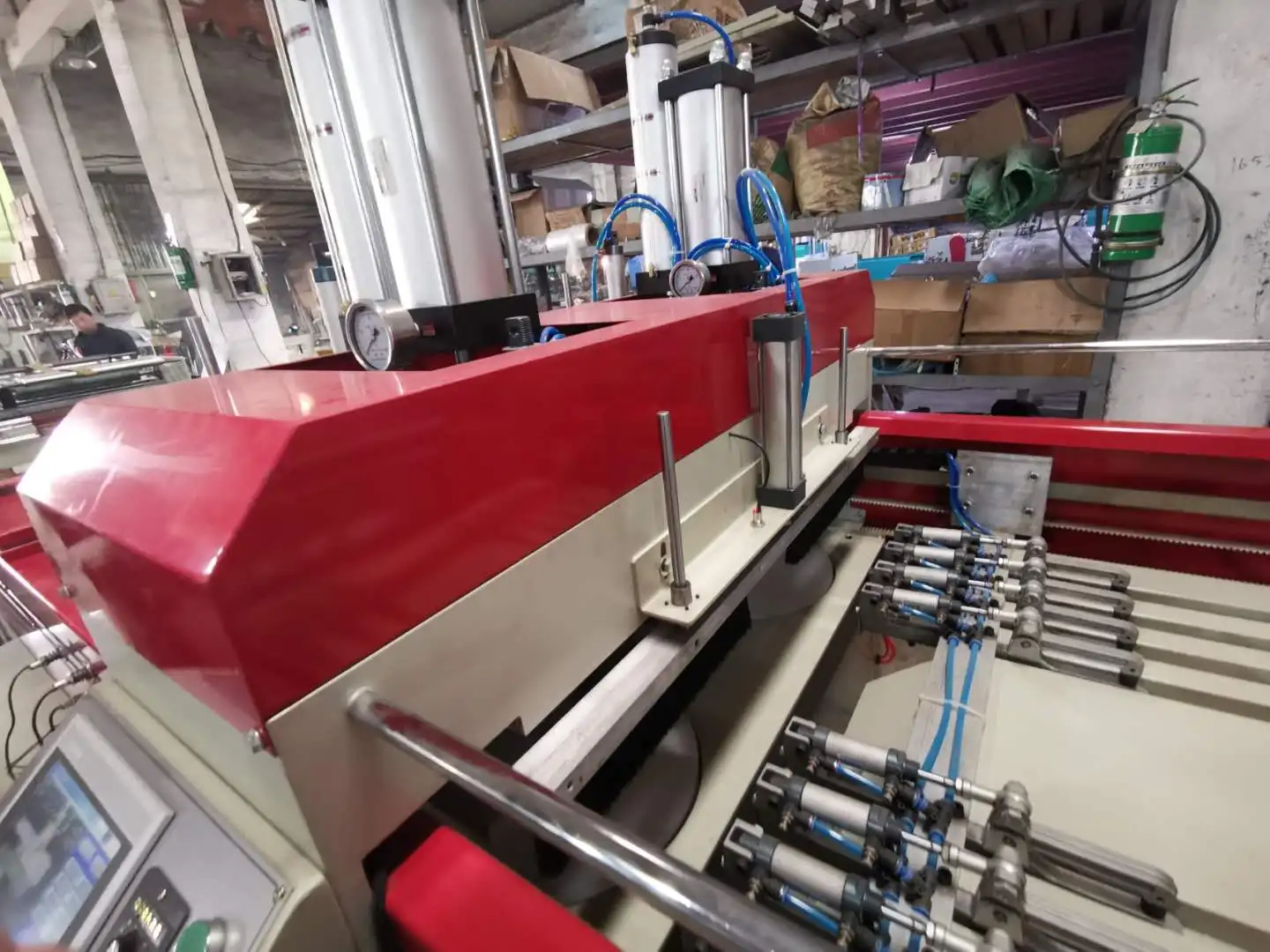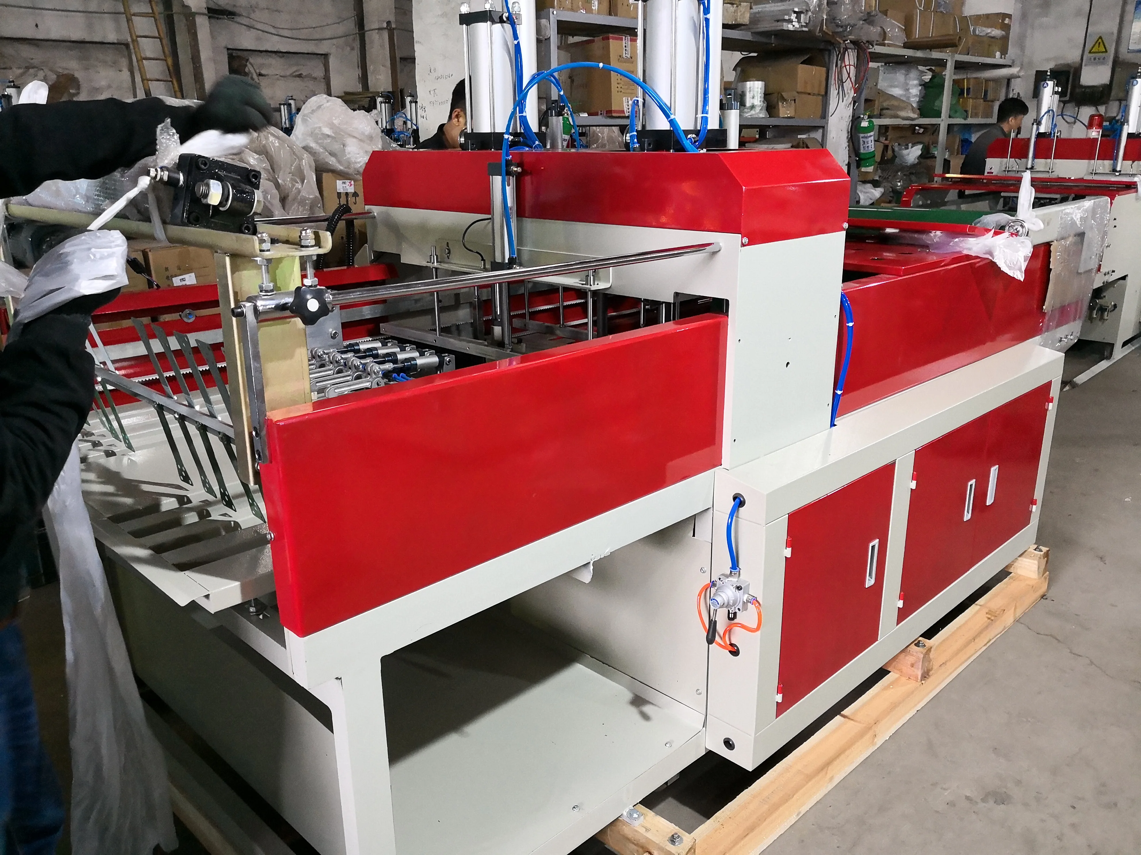 1. Photoelectric eye tracking to ensure accurate sealing and cutting 2. Flexible mechanical gripper moves the finished product 3. Pneumatic device to place raw materials