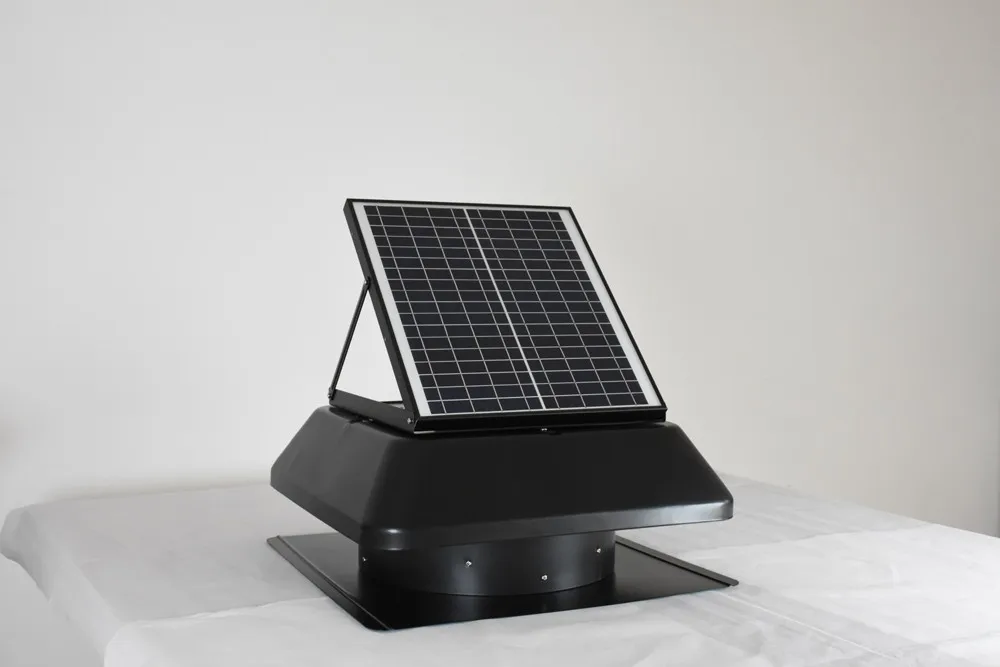 The clever design for the solar roof fan is to get the sun to do double duty. It makes perfect sense to make the sun cool the roof space, since it is the source of the problem in the first place. In any event, you are doing the right thing by trying to use a solar-powered fan.