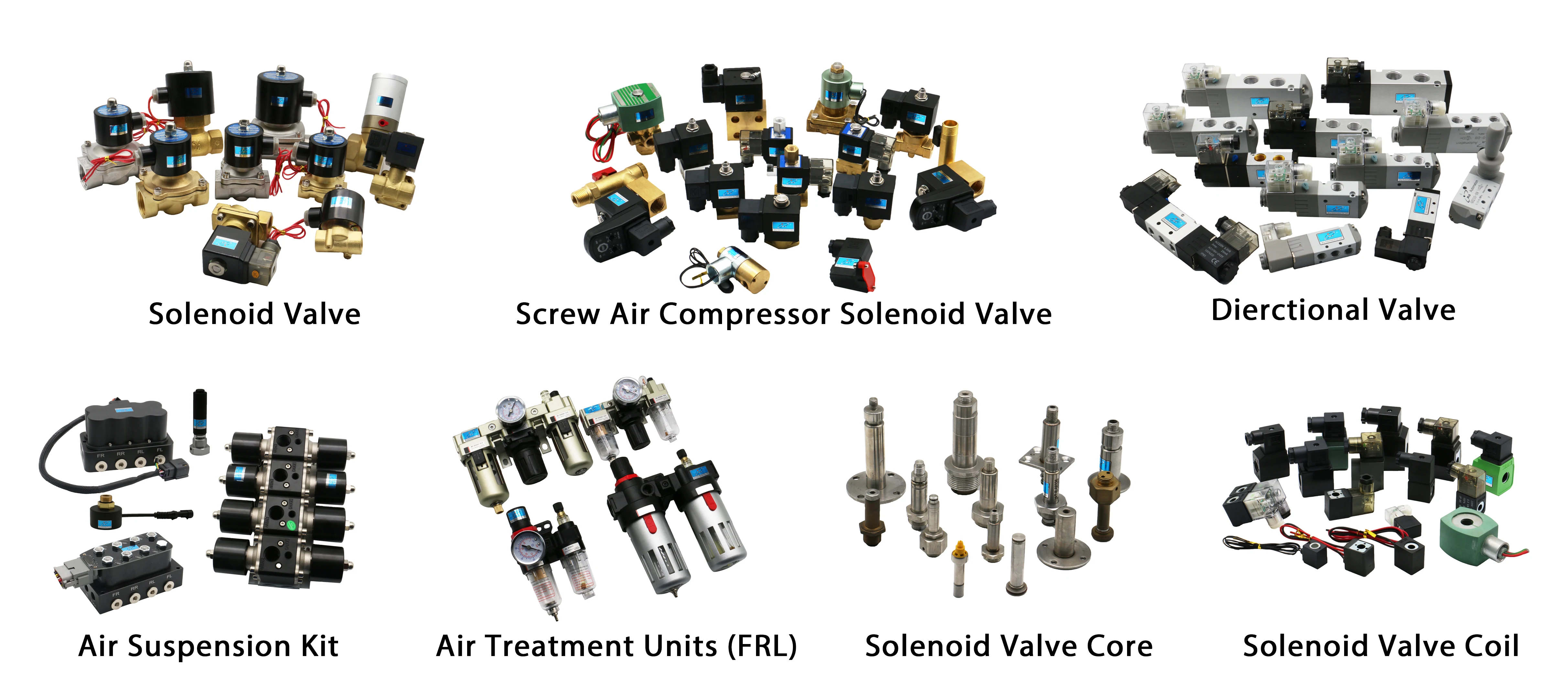 A: We've been in valve field since 2000s, mainly for solenoid valve, brass valve,screw air compressor solenoid valve, automobile valve,air treatment units and air suspension.