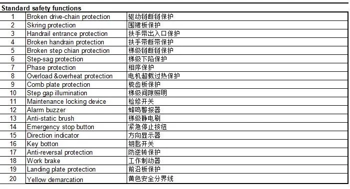 3. Standard Safety Function List of Escalator
