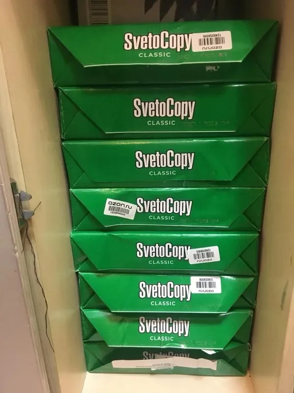 SvetoCopy paper is a well-known A4 office paper due to its excellent technical parameters and low price. Sufficiently tough, minimal chance of paper jams in the printer, and the necessary humidity prevents curling of the sheet.