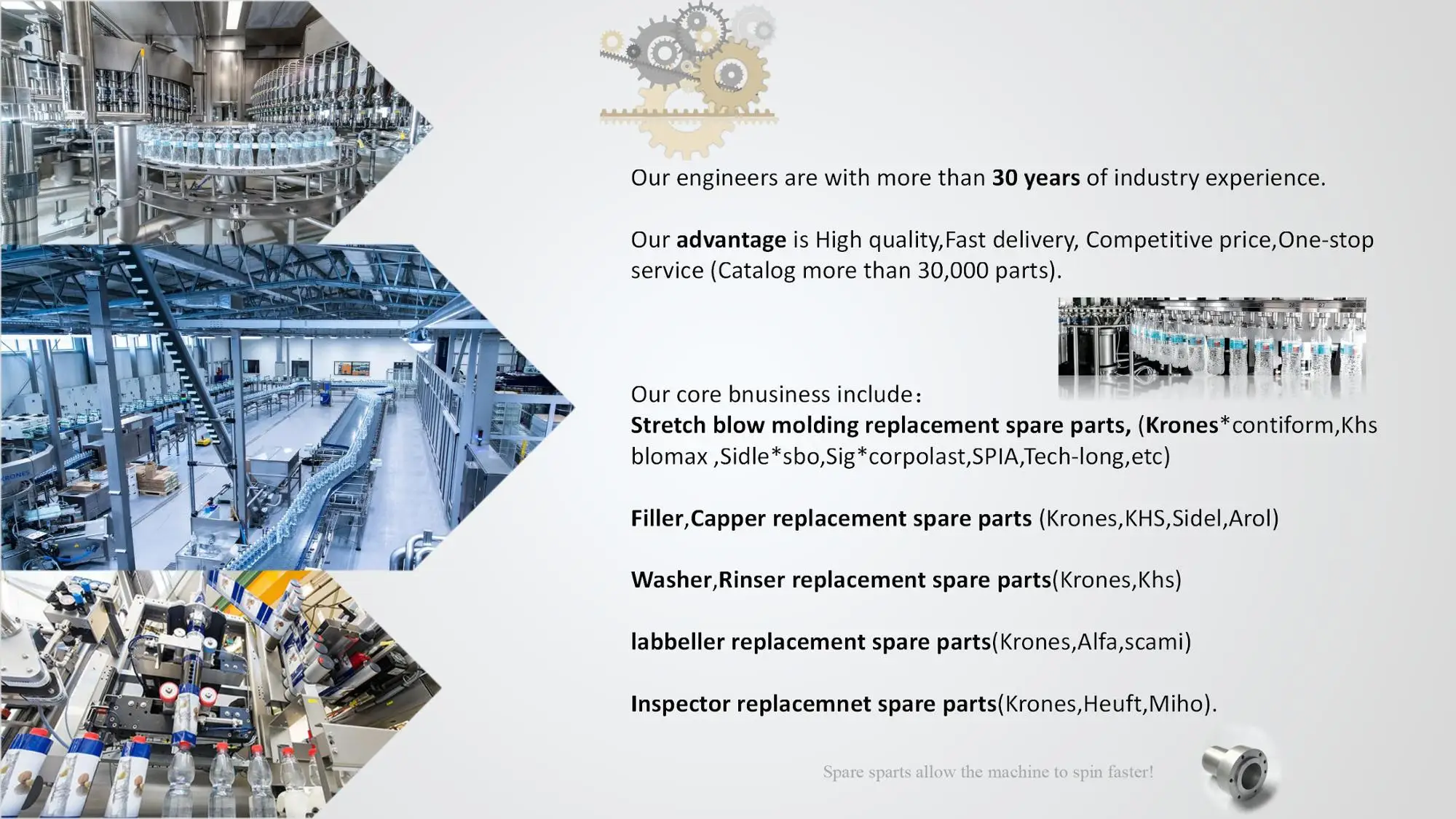 stretch blow molding replacement spare parts.(krones*contiform,khs blomax ,sidle *sbo,sig*corpolast,SPIA,Tech-long,etc)