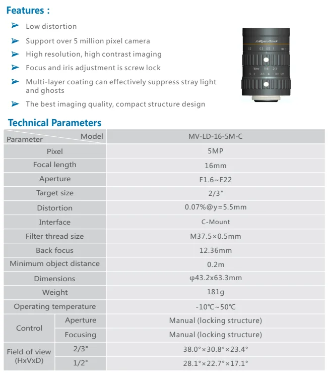Model Number | MV-LD-16-5M-C |