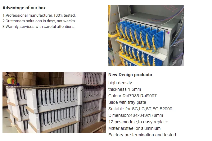 FC, SC or ST connectors. This ODF ’s flexible design gives users the ability to mix and match connectors, cassettes and splice trays. The EK0701-32 maxes out housing 12 pcs modules,easy for splice,maintain and extend.