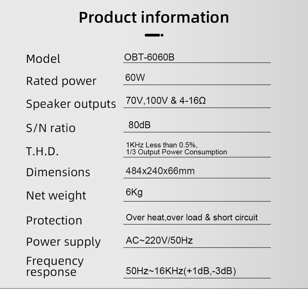 Frequency response | 50Hz~16KHz(+1dbB,-3dB) |