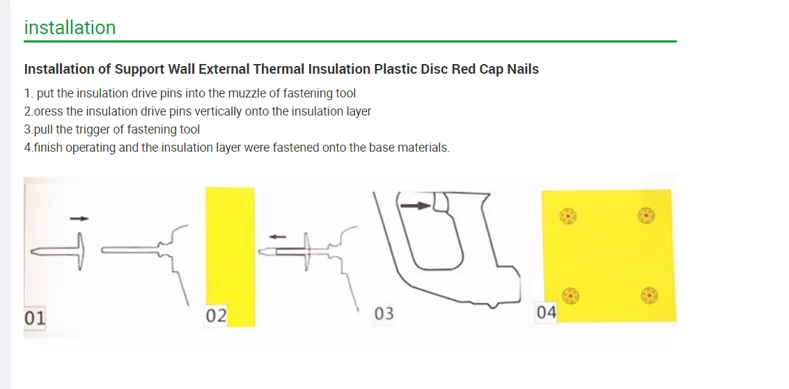 1. consists of insulation fastener and red cap nail 2. Insulation fastener which is made of 100% original Raw material has the characteristics of not combustion -supporting,it has the unique design of tooth shape that can efficoently isolate the drive pin and mortar;stop the heat bridge effect. | |