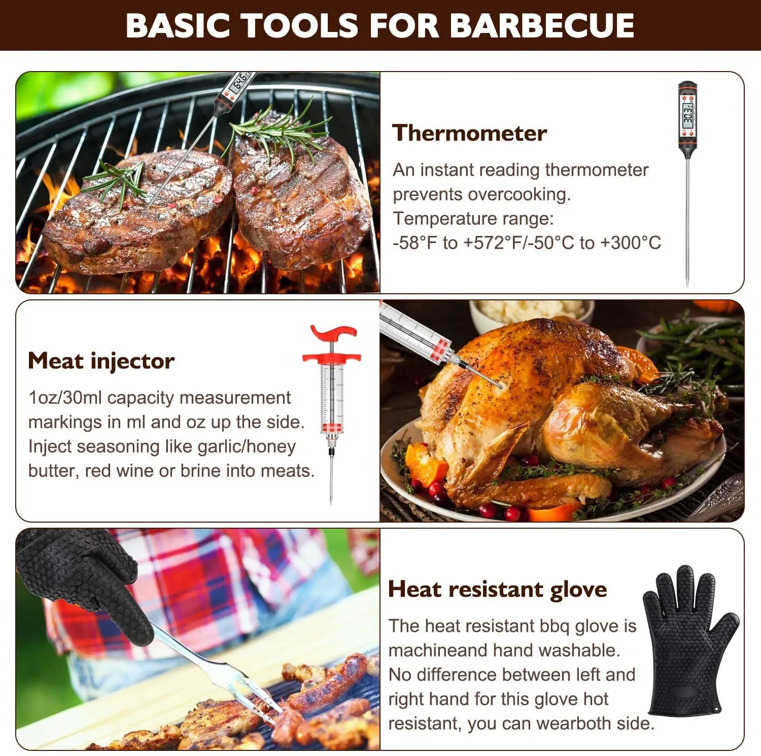 There is no greater present than our BBQ grill set to give to your loved ones. They'll adore these barbecue accessories, which can be used in the kitchen, outside, or anyplace else you cook! Everything you need to cook on a charcoal or smoker grill is included in our grilling tools package.