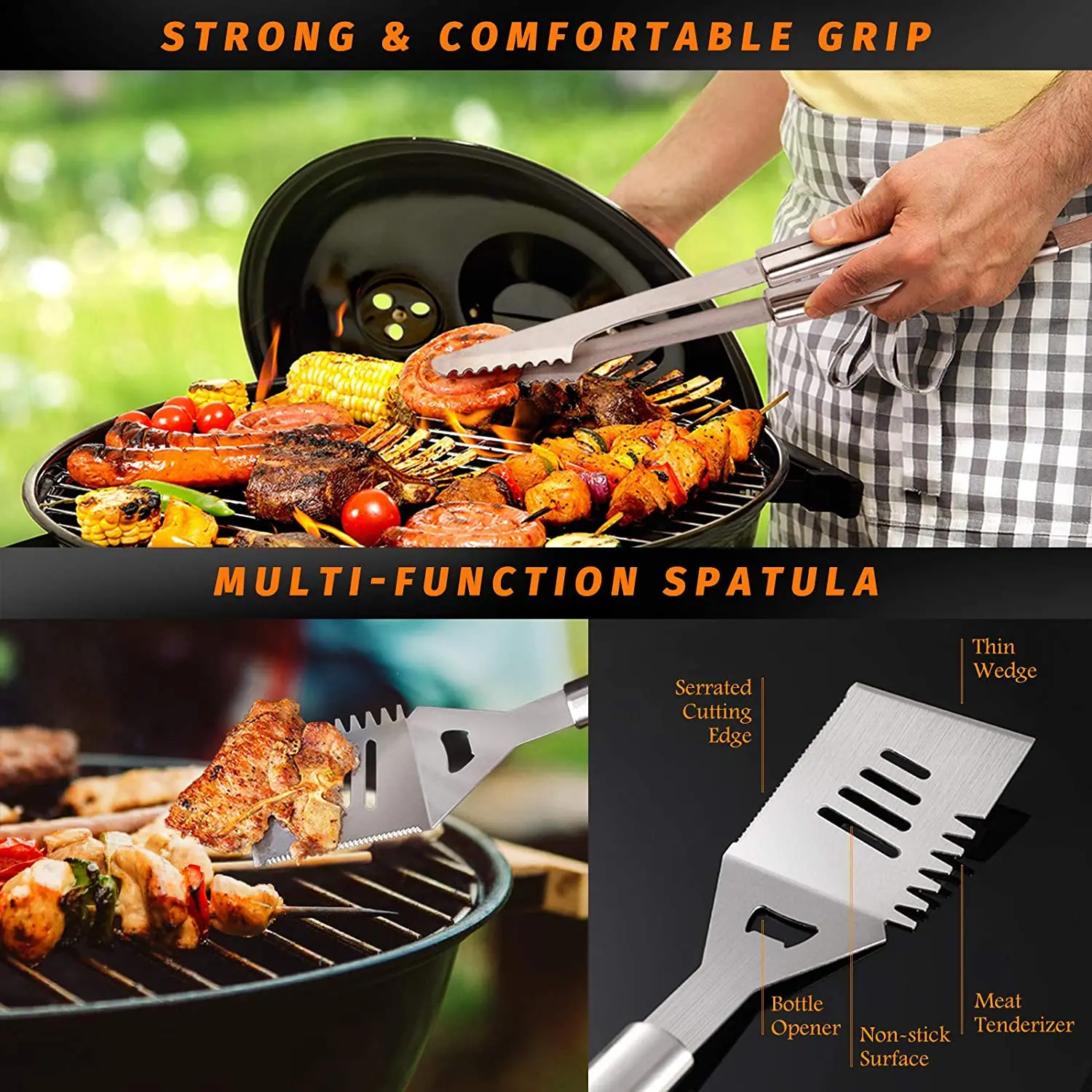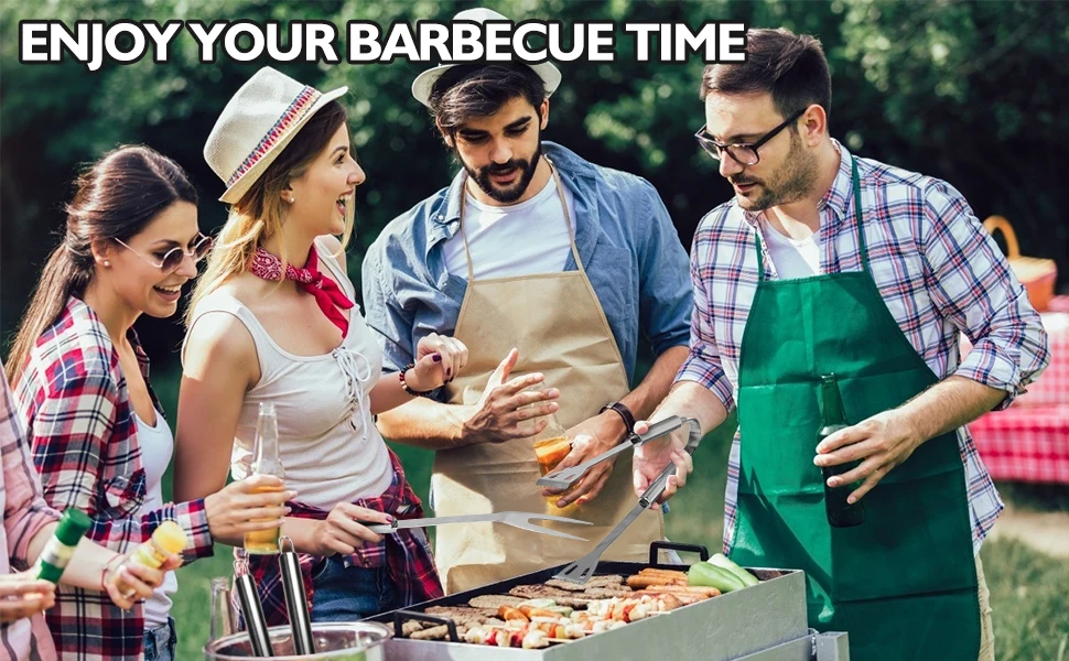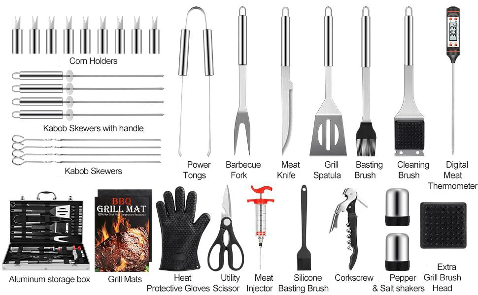 BBQ Grill Accessories, Stainless Steel BBQ Tools Set for Men & Women Grilling Utensils Accessories with Storage Apron Gift Kit for Barbecue Indoor Outdoor