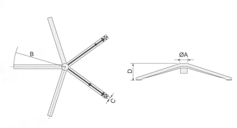 Model No. | A气杆孔(mm) | B半径(mm) | C螺孔(mm) | D高度(mm) |