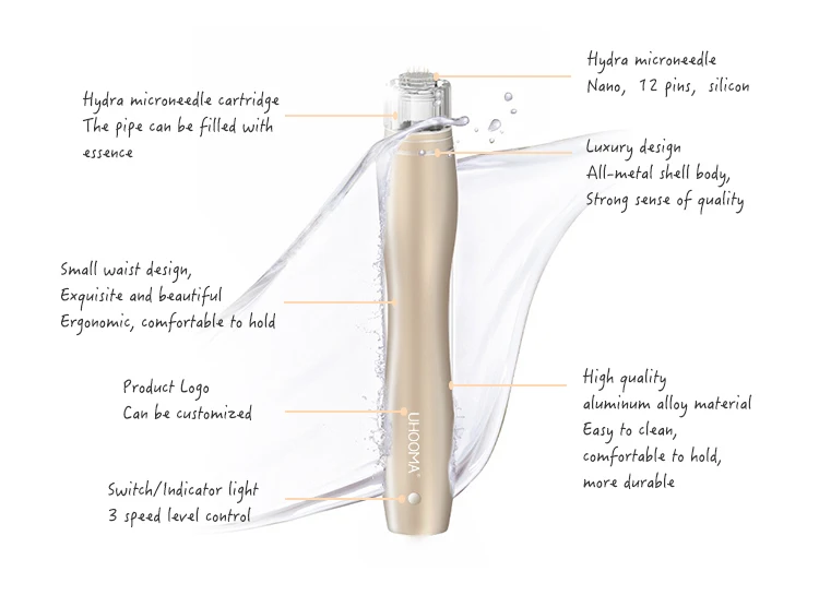 UHOOMA M1 auto hydra microneedle pen is not only a new concept skin care device but also an innovative technology in the field of aesthetic.