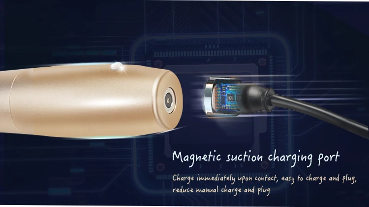 Magnetic power interface and wireless design,can be easily charged anywhere via a USB charging cable. The stylish design and one-button operation is easy to use and carry.