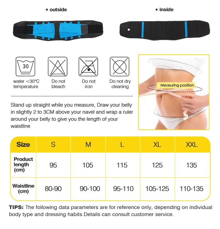 Product Features | WAIST TRAINER TRAINING TRIMMER BELT: Our waist trainer is made of Polyester+Neoprene fabric, which means it is easy to clean, fits to your body, and will not pitch or irritate your skin. Double hook&loop adjustment for sizing accuracy. Mesh backing for breathability during hot sauna or other fitness activities.The waist cincher belt is perfect for weight loss training or even postpartum back support. |