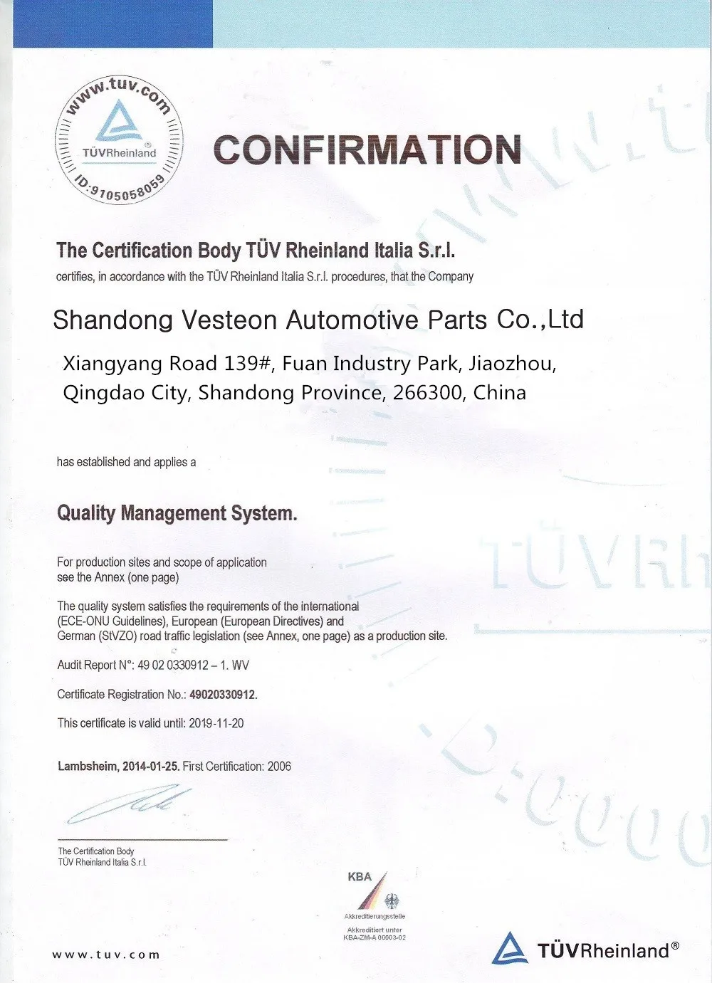 Certificate | ISO/TS16949; TSE; VIA; JWL; TUV |