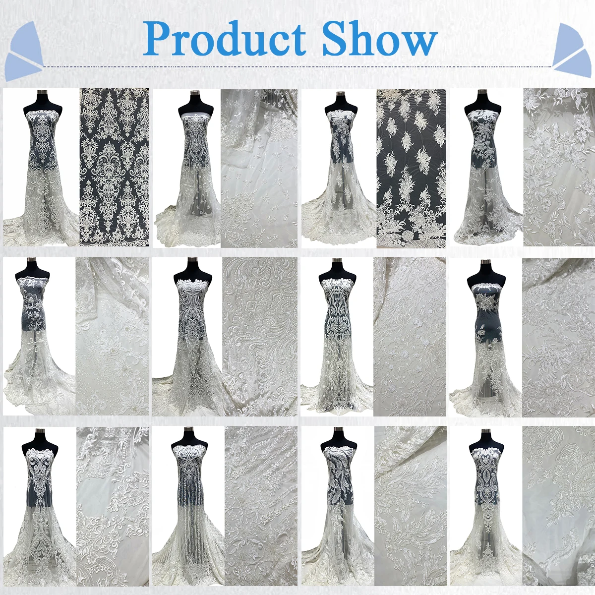 Product | White Bridal Handmade Embroidered Beaded Lace Fabric |