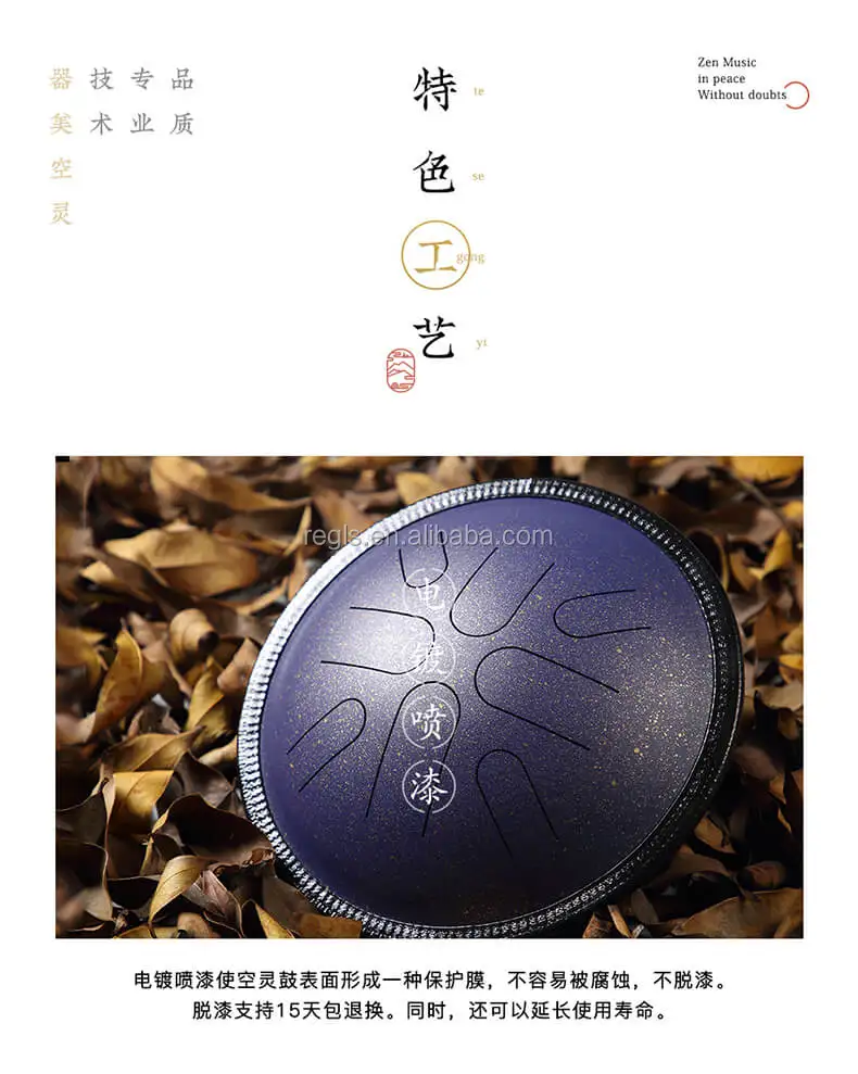 1. High-grade steel, strictly manual adjustment, manual cutting, each pitch is perfect. 2. There is no music background, as long as you explore the origin of music as you like, sound can purify your mind and give you inner peace. 3. You can use the attached drumsticks or hands to play, and the attached notes make it easier for beginners to learn and play. 4. Very suitable for personal meditation, yoga practice, zazen, music therapist, performance, religious activities, etc. 5. Carry a handbag with you to bring any drums.