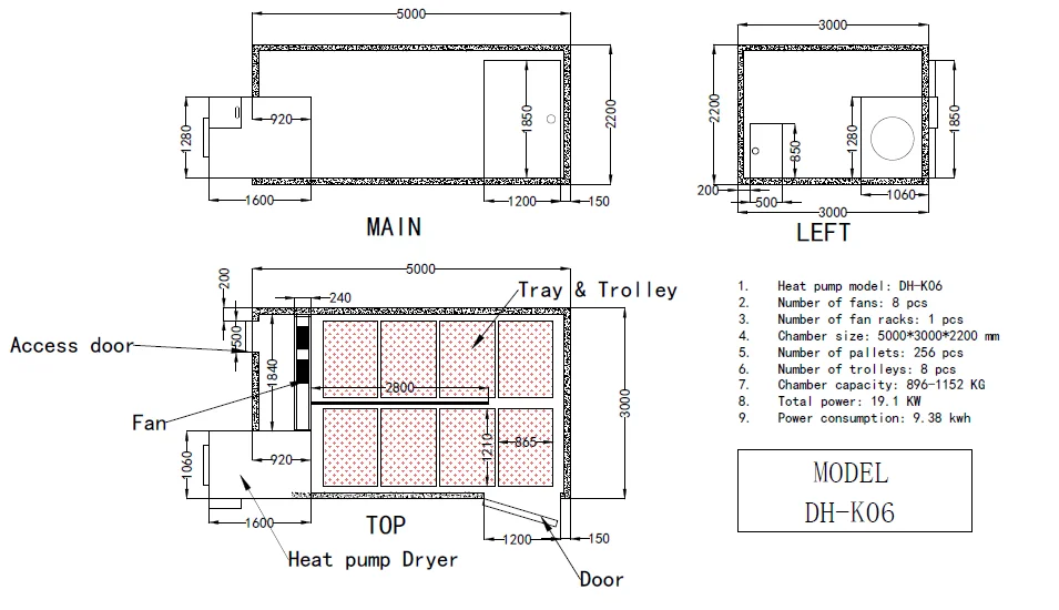 Dehumidify method | 1) Humidity exhaust fan | |