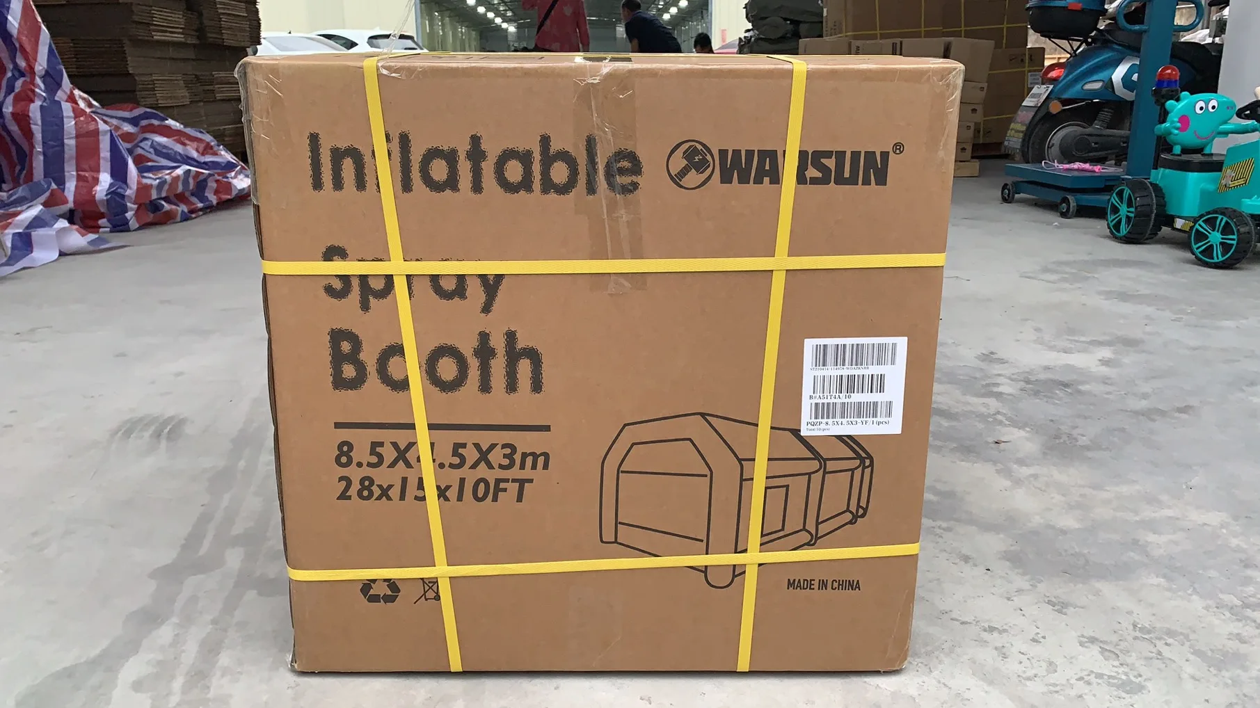Quality control | The air-tight paint spray booth, an air pump blows the pipes, and a fan blow bag. The air bag blower must always be inflated to provide fresh air to the painters inside. |