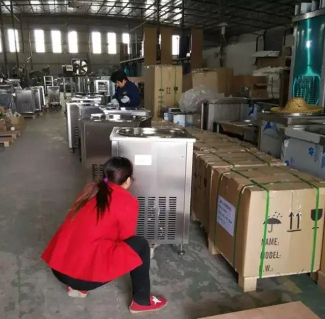 | RY-M1R-6C | Single Flat Pan Roll Fry Ice Cream (one pan with 6 containers) | Power:1300W Voltage:220V/50Hz Dimension:1050*750*880mm Packing Dimension:1100*800*1130mm Ambient Temperature:5~40℃ Mixture Temperature:2~35℃ Copressor:Embraco Aspera/Panasonic coolant:R22/R404a Weight:42Kg |