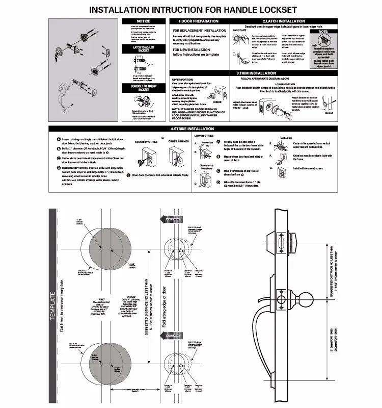 Installs in standard 2" (51mm) crossbore, replaces most existing locksets.