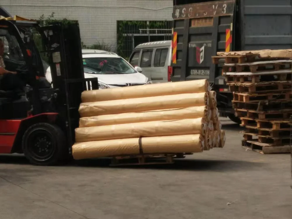 Yalees pvc mesh fabric packed in kraft packing.Overseas sales