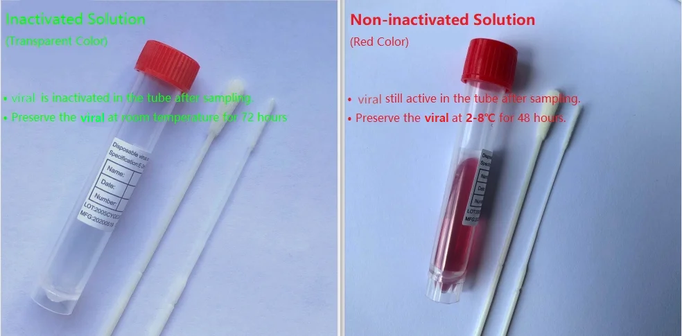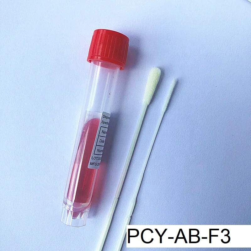 PCY-A-F3 | 1*Throat Swab,1*Tube with 3ml Preservation Solution (Non-inactivated Medium) | 1.Swab length: 15cm or customized 2.Swab breakpoint: 3cm& 8cm 3.Preserving liquid: Non-Inactivated | |