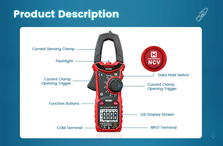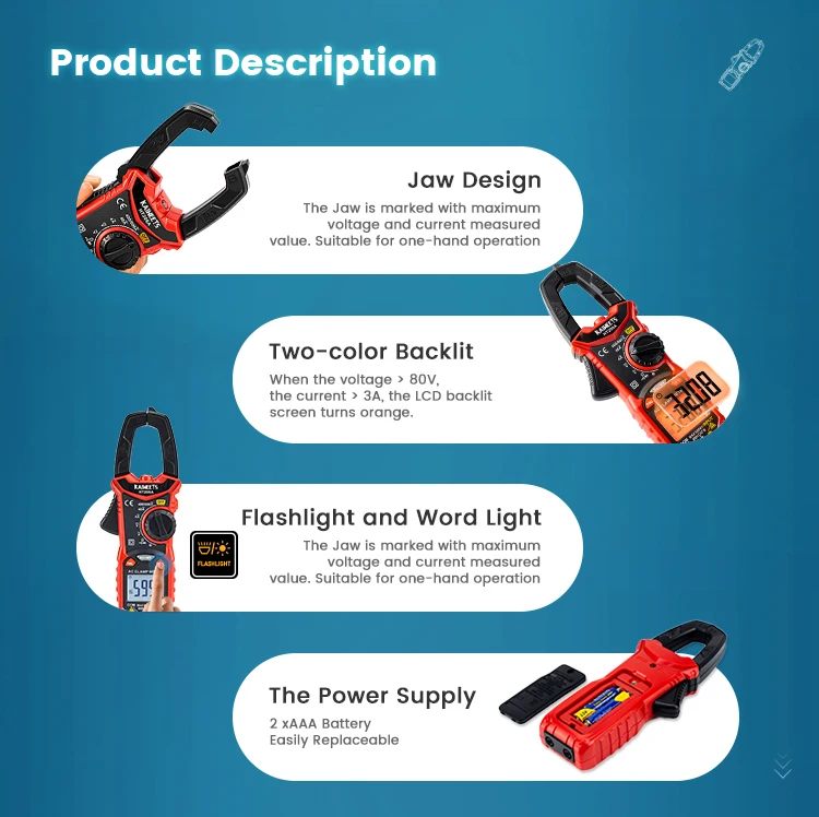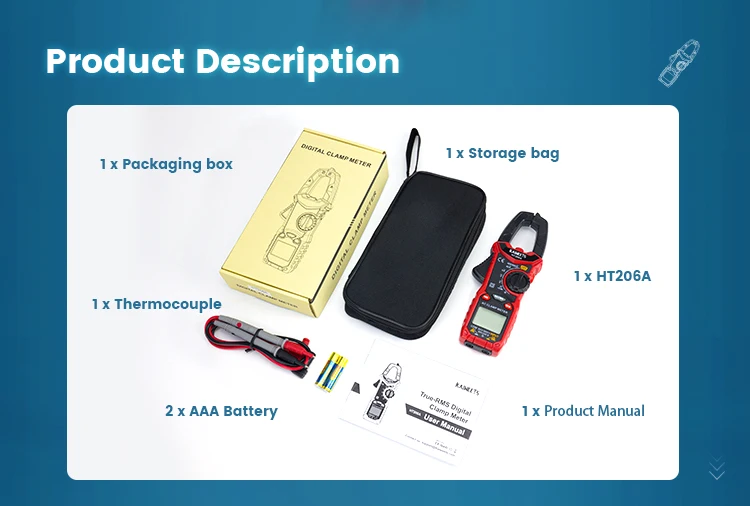 3:What Do You Get? 1x KAIWEETS HT206A clamp meter 1x Test Leads 2 x AAA batteries 1x Carrying Bag 1x Instruction Manual 4:How soon can we ship the goods? We can ship the goods on the same day as we have overseas warehouses in various regions