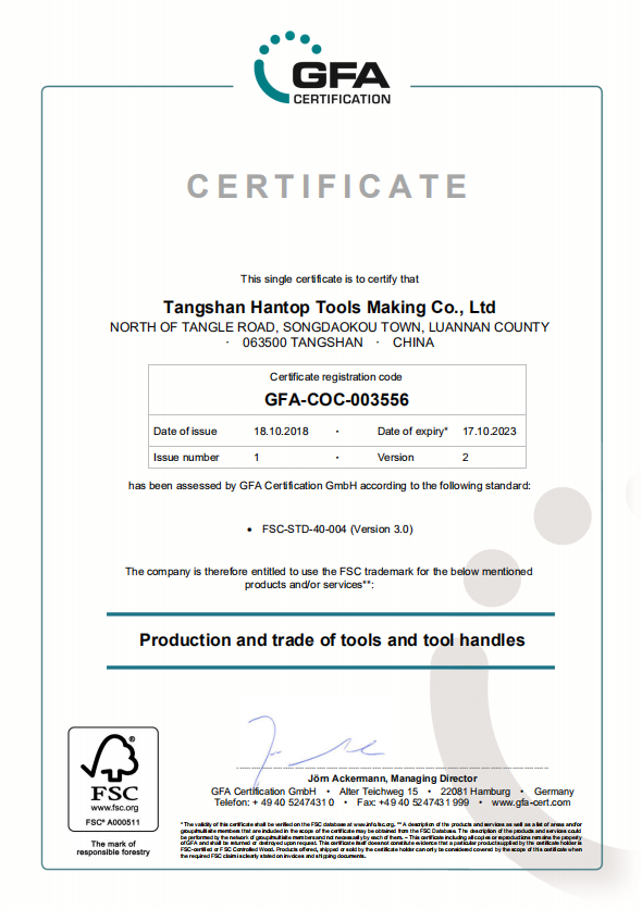 Tangshan Hantop Tools Making Co., Ltd. is established in 2012 and located at beautiful Bohai seaside--Songdaokou Town, Luannan County, Tangshan City, Hebei Province, which covered area 15000 square meters and total area more than 20,000 square meters. Hantop is a professional manufacturer of garden tools and farming tools for international users, including spades, picks, hoes, rakes and forks etc. Register HANOP trademark, annual production is more than ten million pieces of tools valued more than 20 million dollars.
