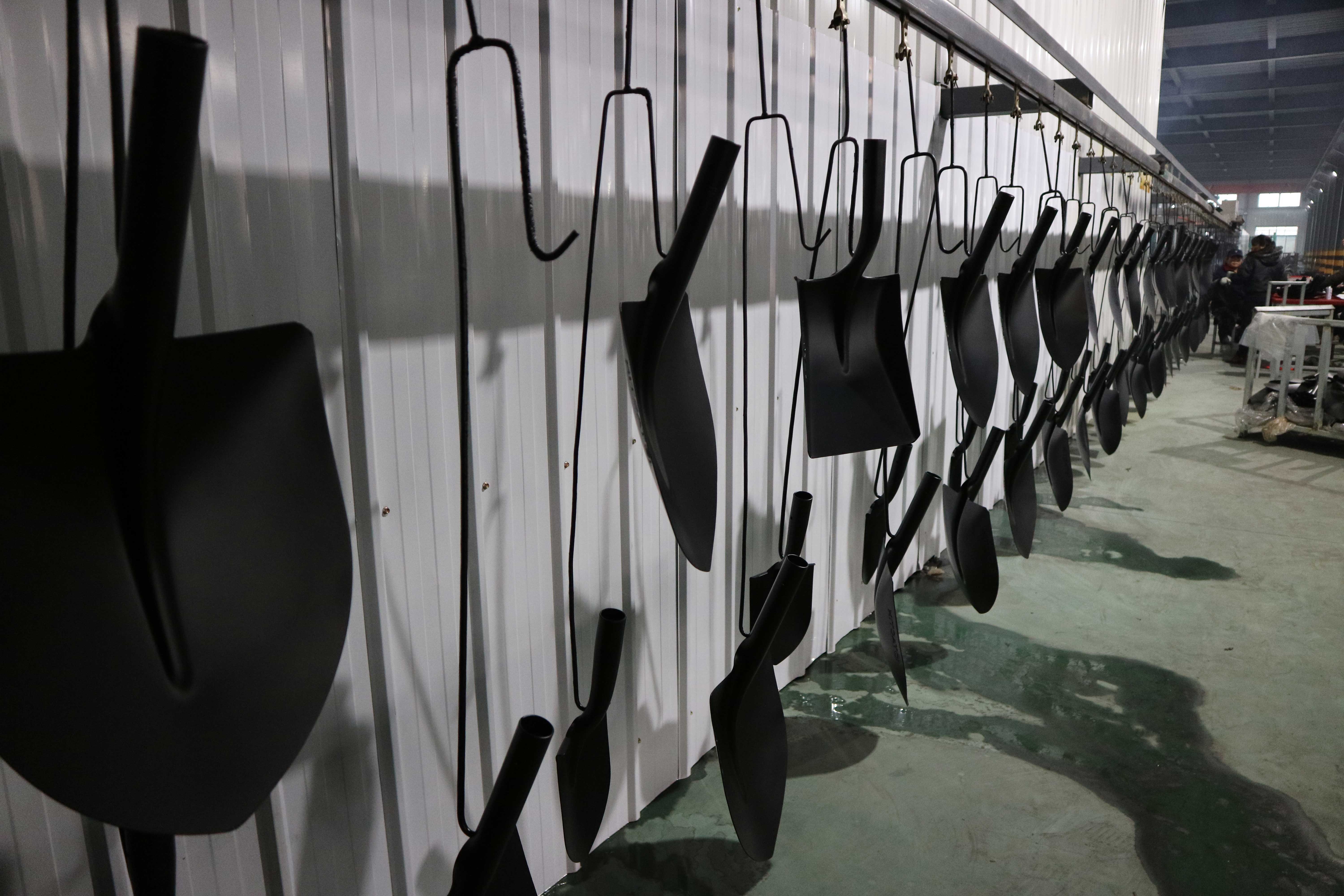 Our company has advanced manufacturing equipments and process including blanking process line, high efficiency ceremic tube drive gas heater, work-piece surplus heat quenching process;reciprocating 2001 air-assisted electrostatic spry gun for automatic spraying,most advanced gas furnace is adopted for drying and solidification and drive cooling process;wooden handle and assembly has achieved 100% mechanization. Standardized steel shovel test and inspection equipment and quality control system with quality equal and higher than the national industrial standard enjoying great reputation home and abroad.