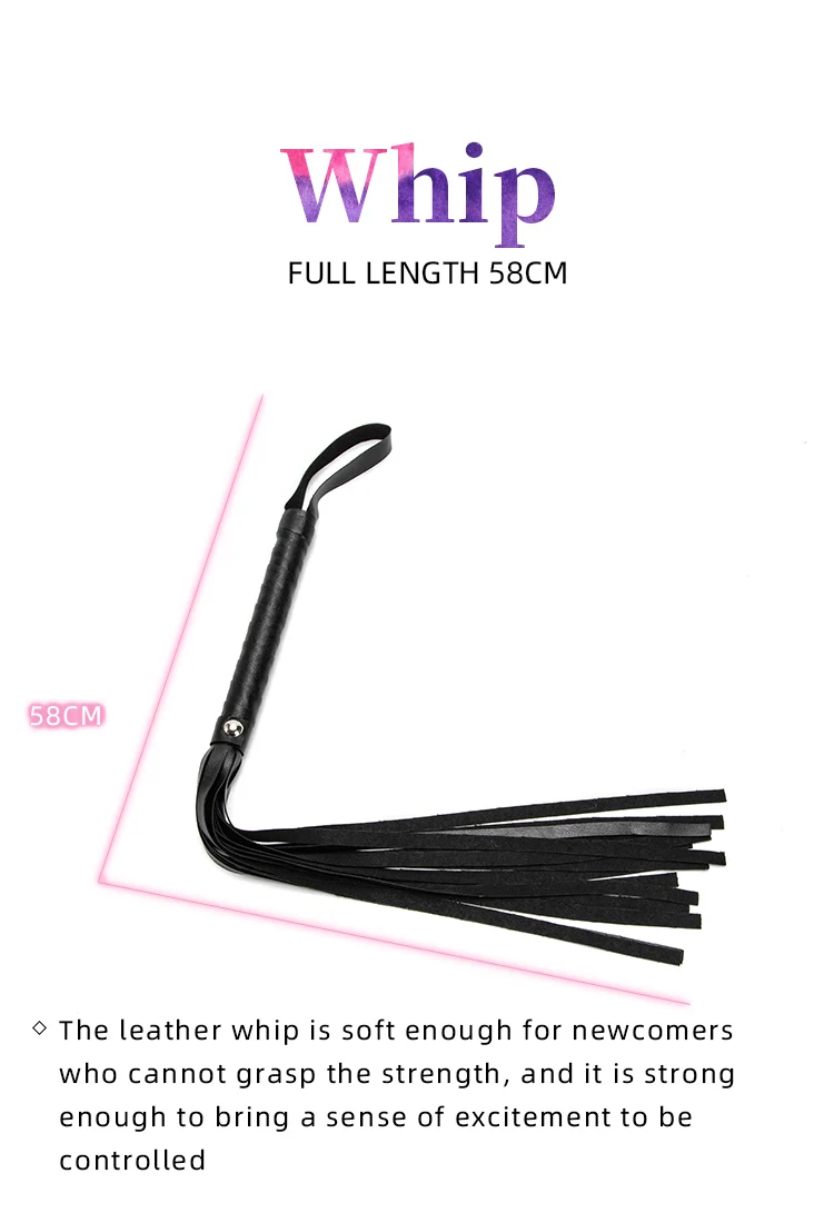 Included | handcuffs,shackles,coller,mouth plug,blindfold,leather whip,cotton rope |