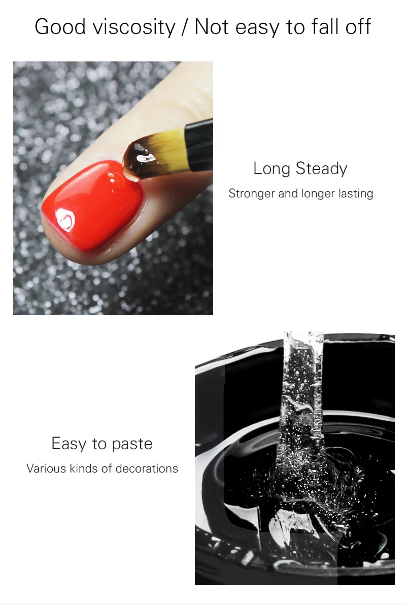 Feature | Feature: High viscosity, long lastin and no yellowing, easy application and match fo different size of stone on nails |