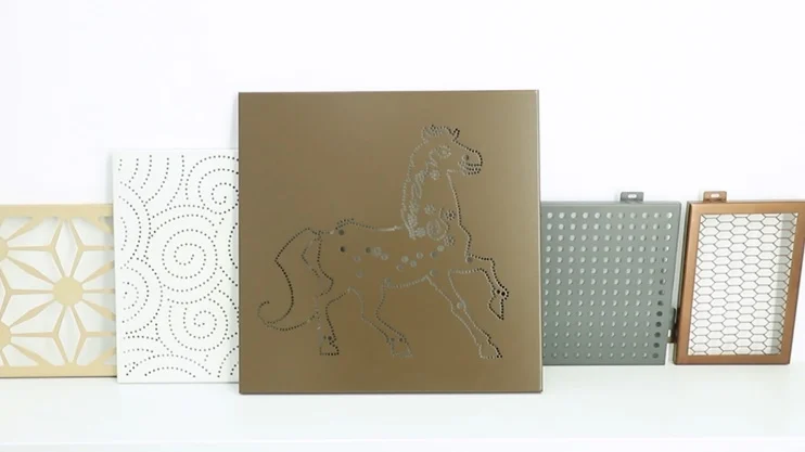 Our main products are PVDF coating and powder coating Perforated aluminum solid panel,flat aluminum solid panel,square aluminum solid panel,hyperbolic aluminum solid panel,aluminum air-conditioning cover,wood grain aluminum solid panel,aluminum screen panel,elevator aluminum solid panel. Our products are mainly used in the interior and exterior decoration of theaters,shopping malls,hotels,office buildings, gymnasiums,stations,airports and exhibition centers and other public Spaces.