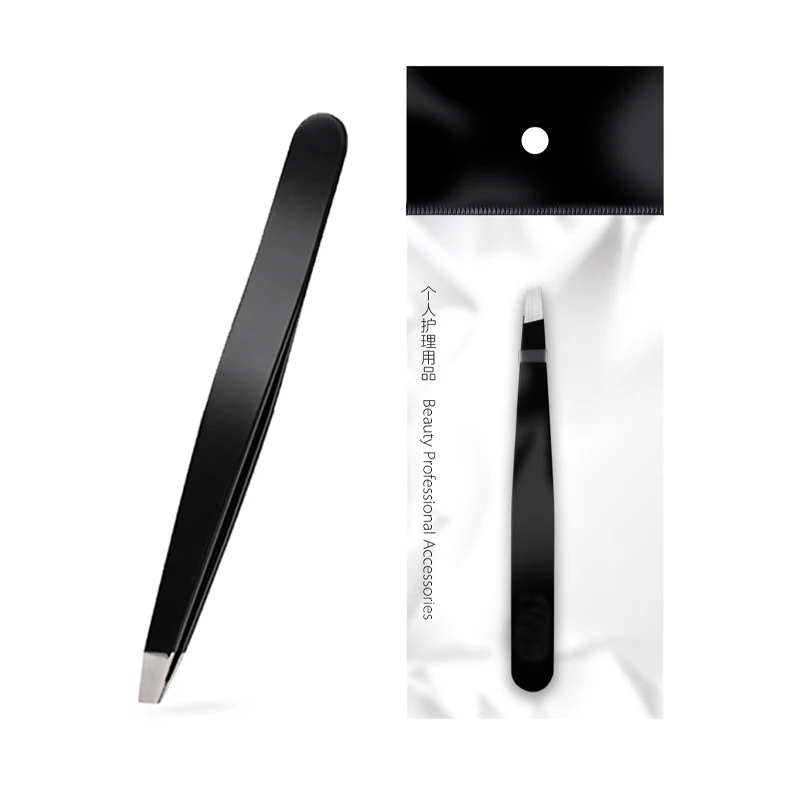 Wholesale Anti Static Black Steel Stainless Packing Cosmetic Tool Eyebrow Lash Pointed Tweezers for Beauty